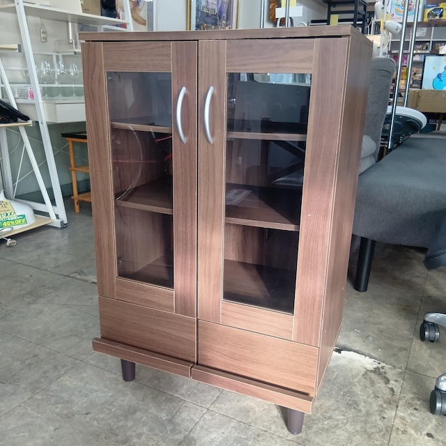 ◆商品案内◆ アイリスオーヤマ カップボード ミニサイズです。 KPB-9360 ブラウンカラーの木製で透明ガラスの観音開き扉と、 下には2つの引き出し。 名称はカップボードですがお部屋の収納家具としても お使い頂けそうです。 幅約60㎝ 高約94㎝ 奥約42.5㎝