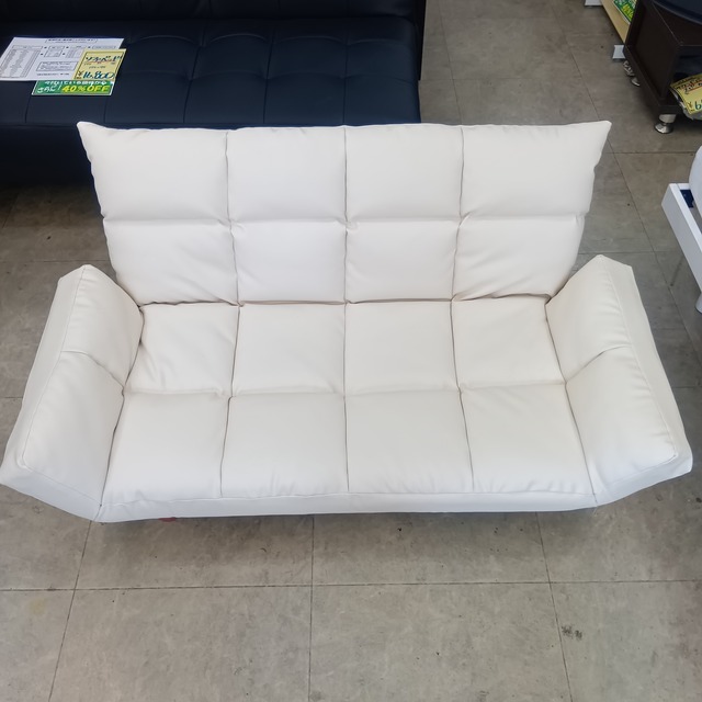 ◆商品案内◆ 2人掛けの小ぶりで可愛いコンパクトソファです。 高さのあまりないロータイプ。 白系の合皮。 背もたれは少し角度を変えられますがひじ掛けは 動きません。 2人掛けは欲しいけど一般的なのは大きすぎて置けない という方や単身の方にちょうどいい小さめサイズです。 幅約115㎝ 床から座面までが約22㎝