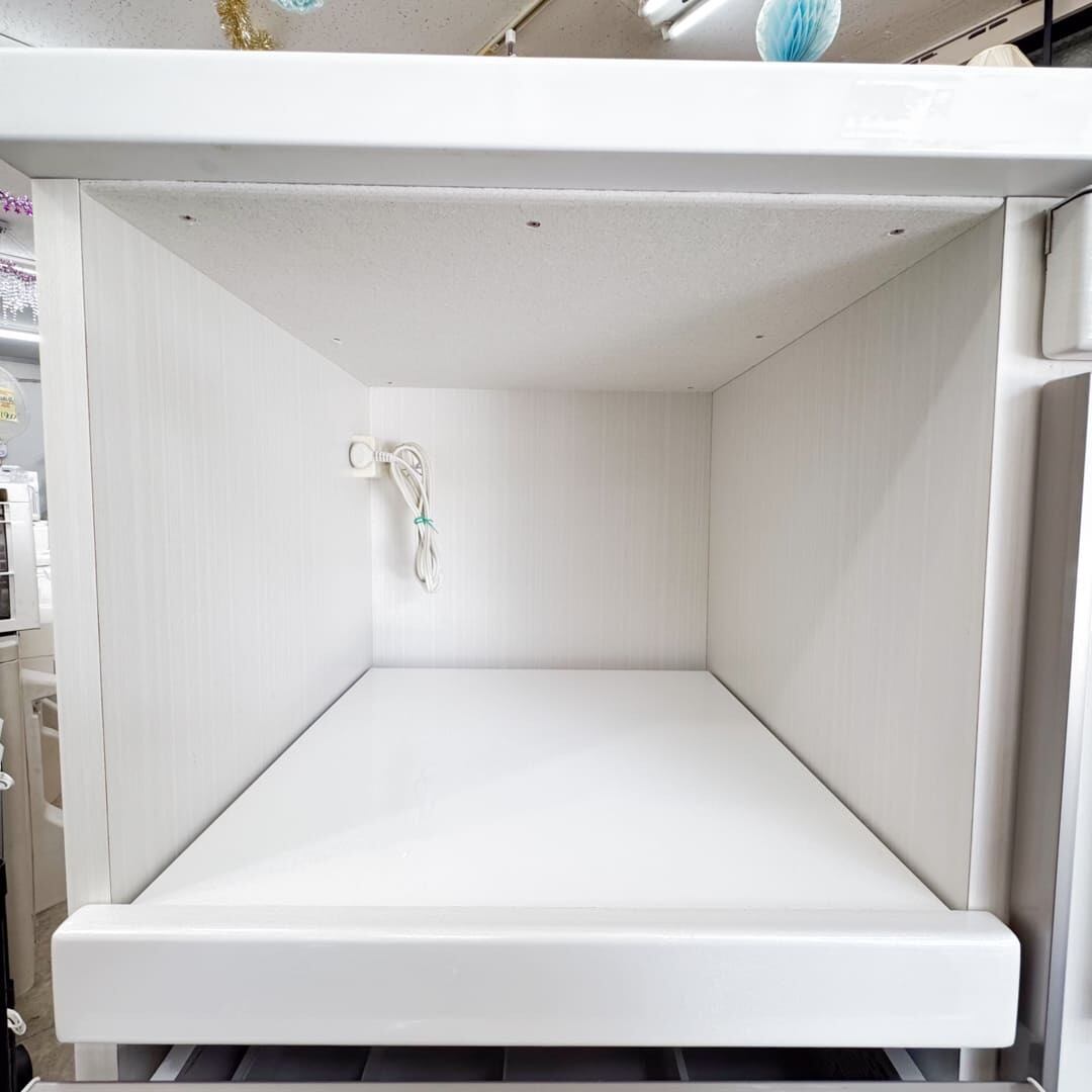 中古品として良好な状態を保っています。目立った傷やへこみはほとんどなく、天板の表面も使用感は軽微です。扉の開閉部分や取っ手周辺も摩耗は少なく、清潔感のある外観を維持しています。全体的にていねいに使用されていた様子がうかがえます。右サイドに透明のフックが付いていますがあえて取り外していないので何かひっかけてお使い下さい。