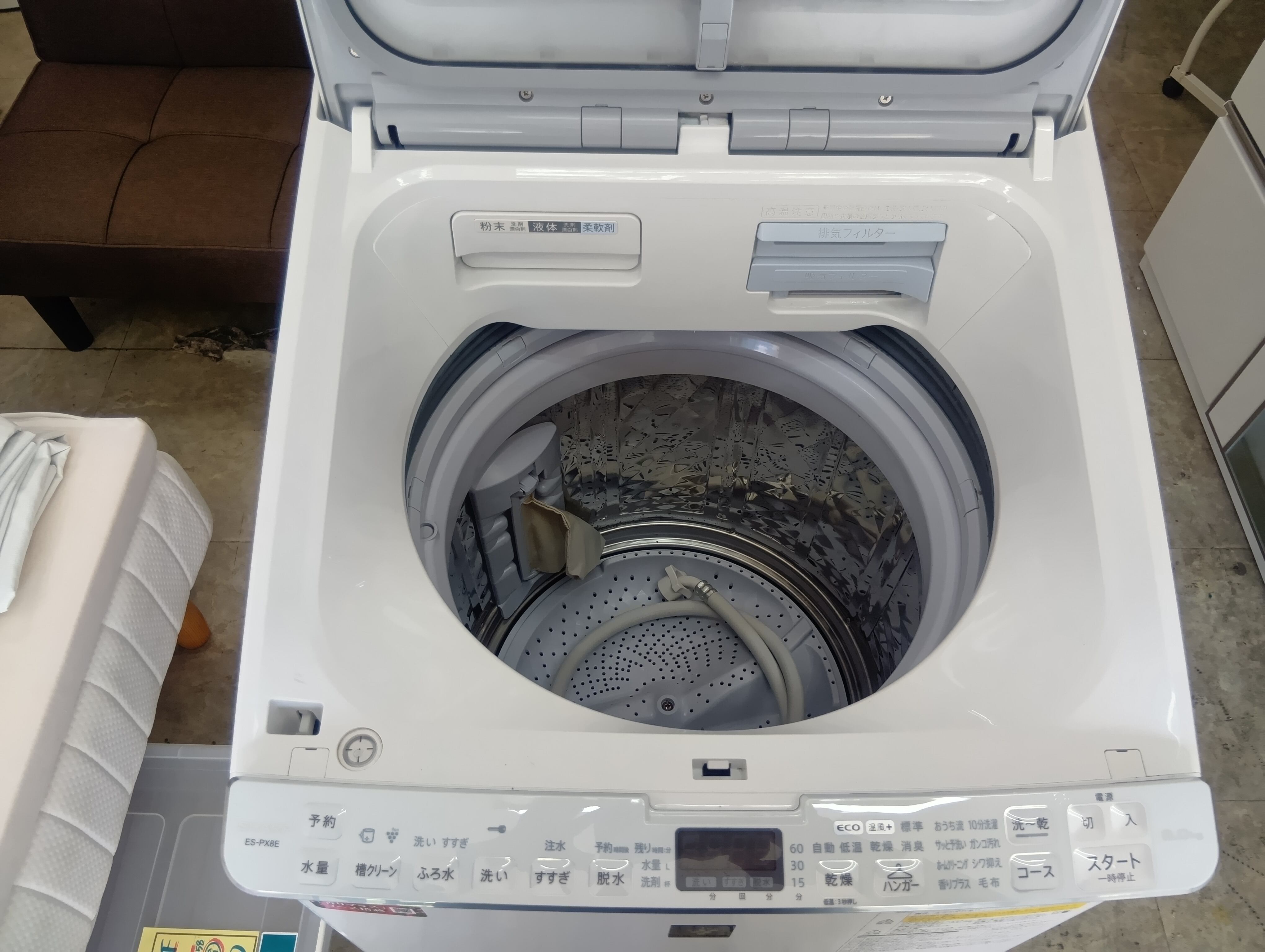 シャープの縦型洗濯乾燥機ES-PX8Eは、洗濯8.0kg・乾燥4.5kgの大容量で4〜5人家族にぴったりの実力派モデルです。ステンレス穴なし槽採用で黒カビ・汚れの侵入を防ぎ、いつでも清潔な洗濯槽をキープできる優秀な設計が魅力です。最新機種と比較しても基本性能は十分現役で活躍でき、シャープならではのプラズマクラスター技術や穴なし槽技術で、衣類を清潔に洗い上げます。リユース品でも安心してお使いいただける信頼の逸品を、新品の半額以下でご提供いたします。