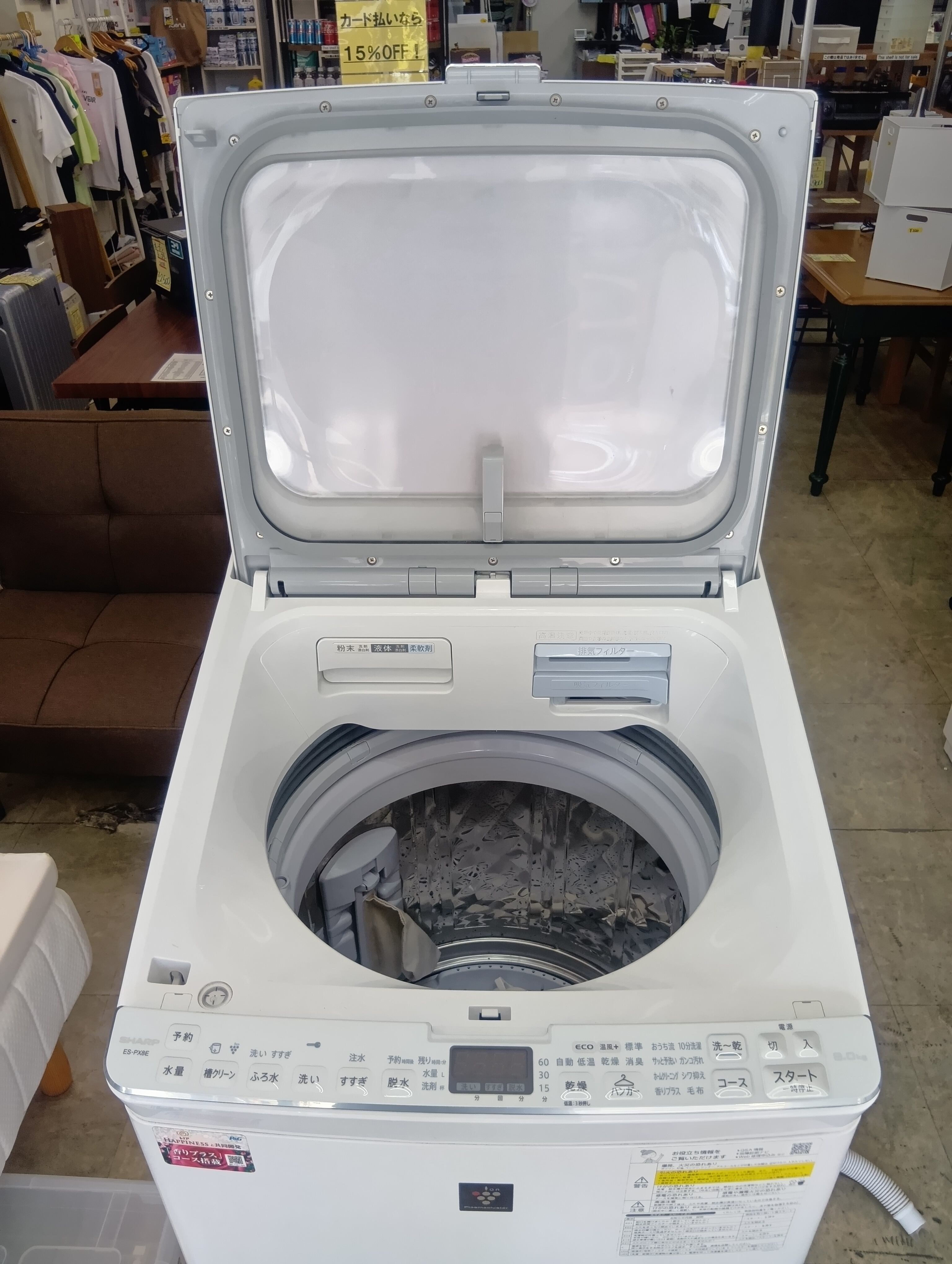 シャープの信頼ブランド縦型洗濯乾燥機が、リユース品だからこそ実現できる破格の価格でご提供!ステンレス穴なし槽で清潔性抜群、大容量8.0kgで大家族にも対応できる実力派モデルです。