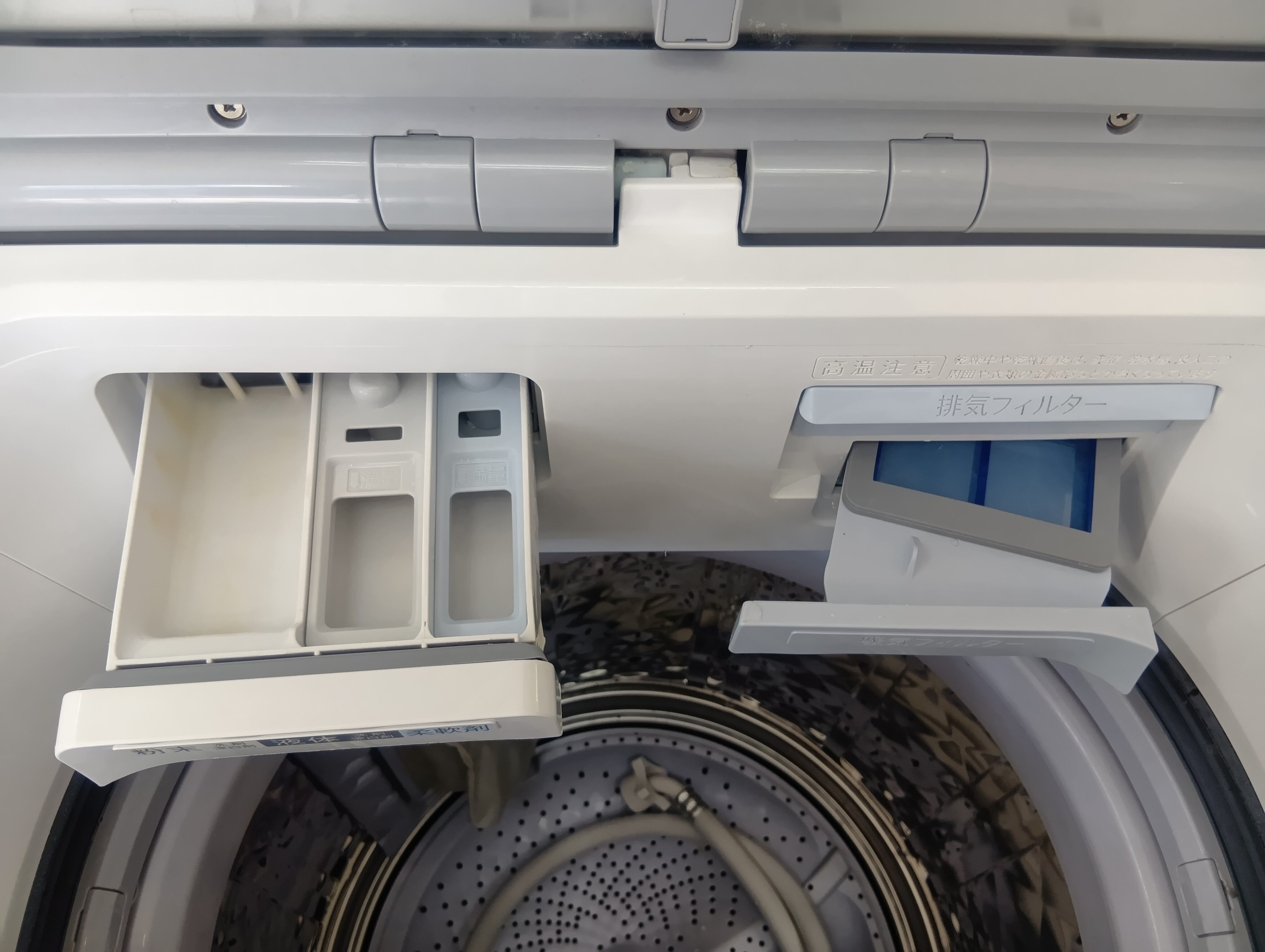 内部の清掃・メンテナンスを徹底実施しています。ステンレス洗濯槽、糸くずフィルター、排水系統の清掃を行い、衛生的な状態でお届けします。穴なし槽の効果で内部も非常に清潔な状態を保っており、すぐに安心してご使用いただけます。