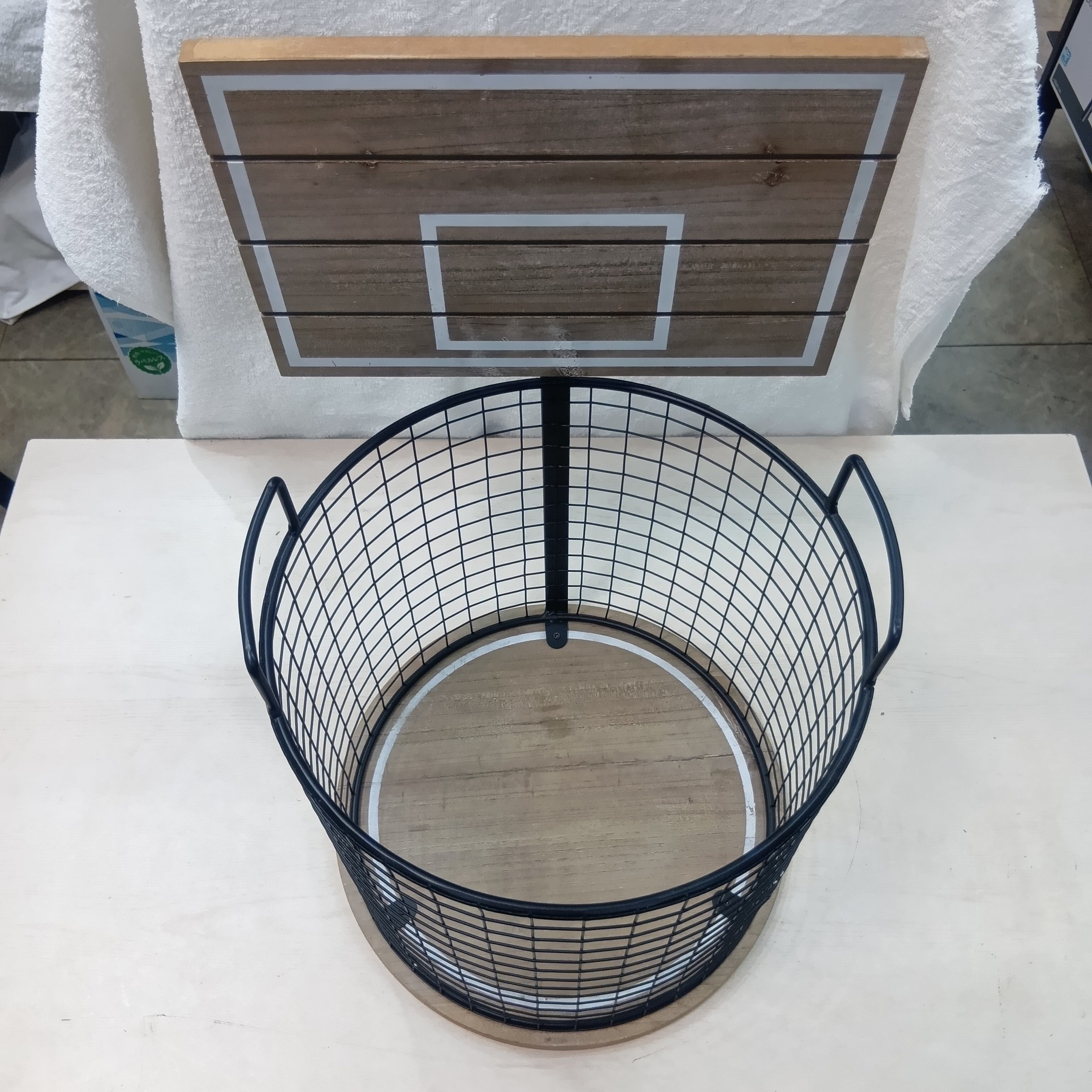 バスケットのゴールデザインのごみ箱です。