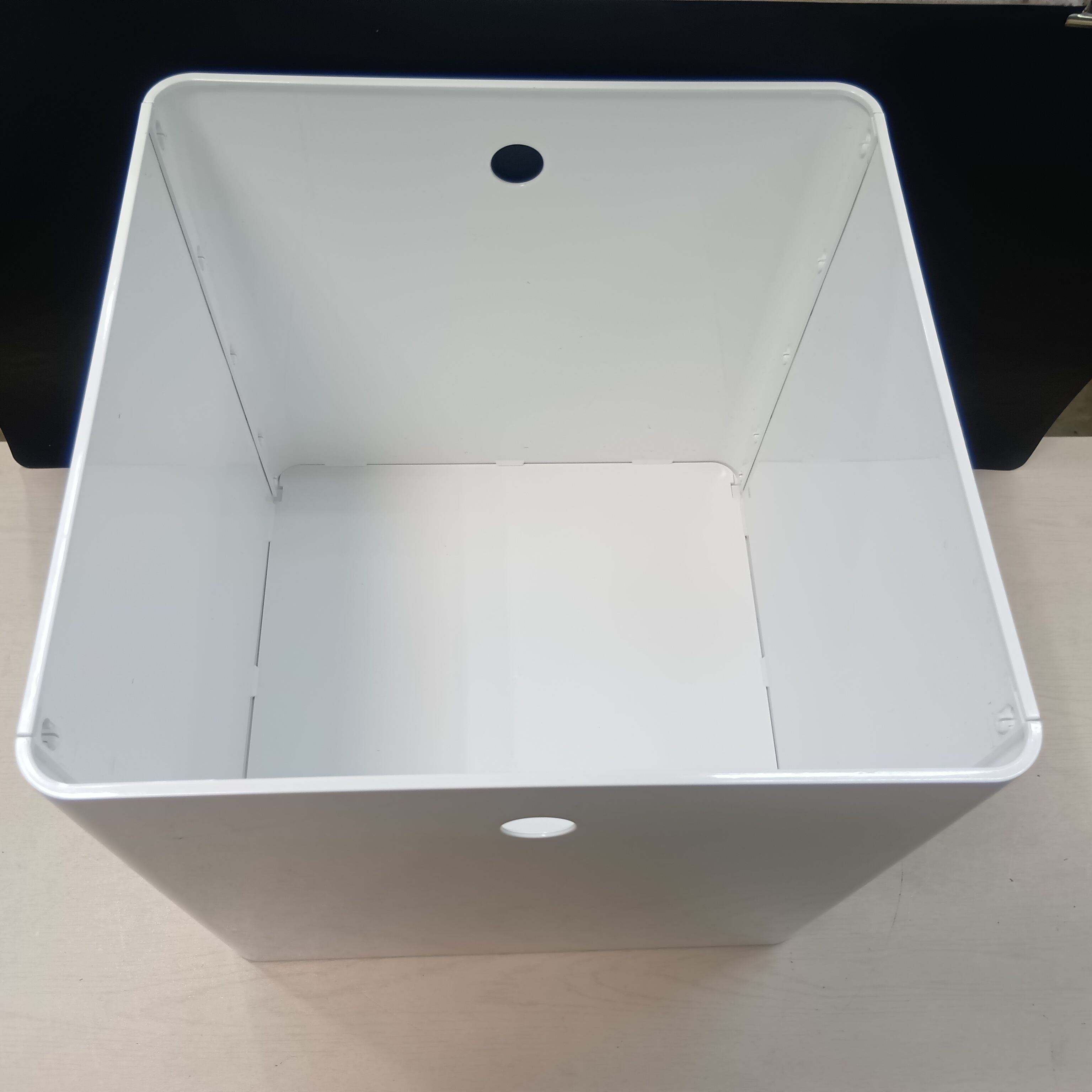 真っ白でキューブ状の収納ボックスはあえて見えるように