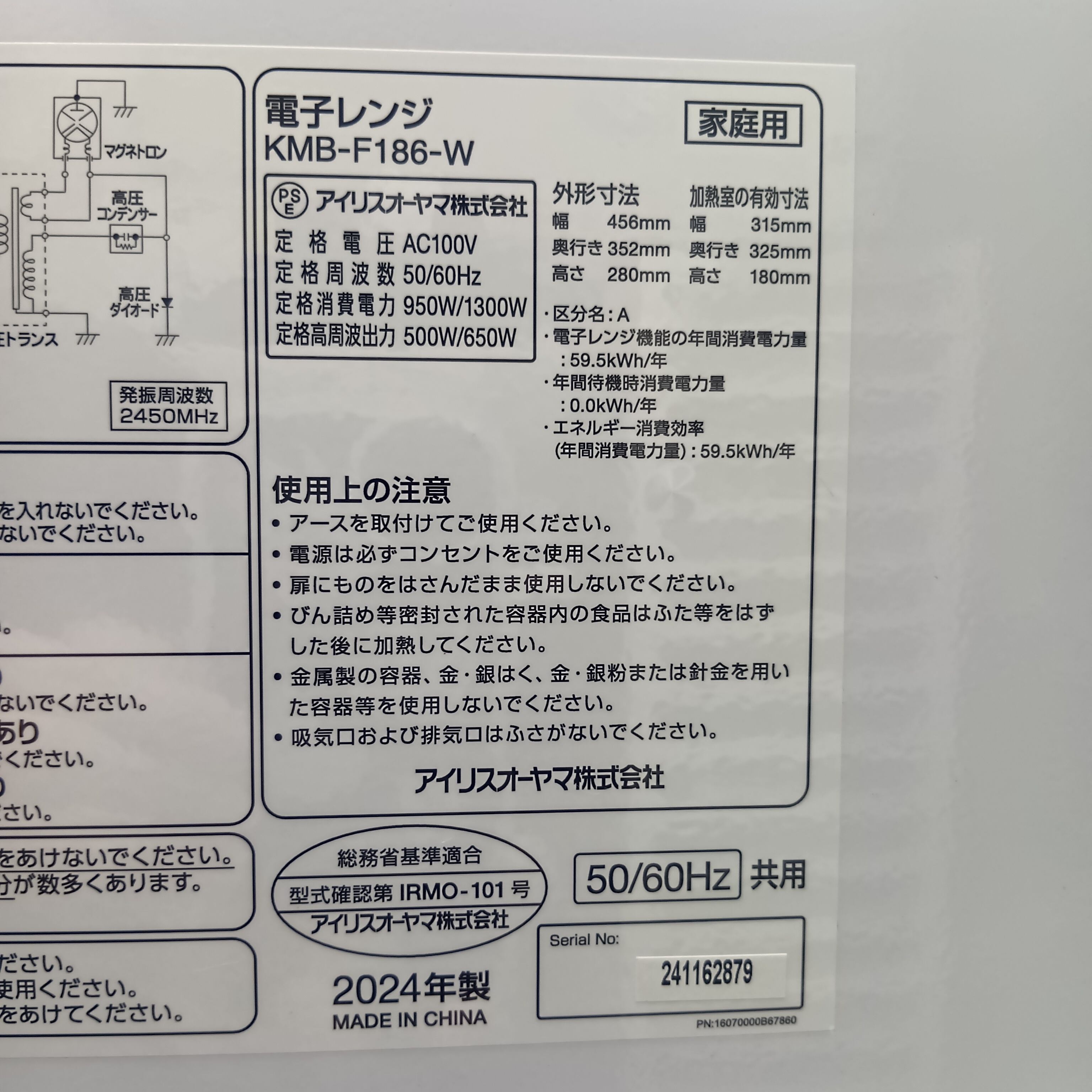 アイリスオーヤマ 電子レンジです。