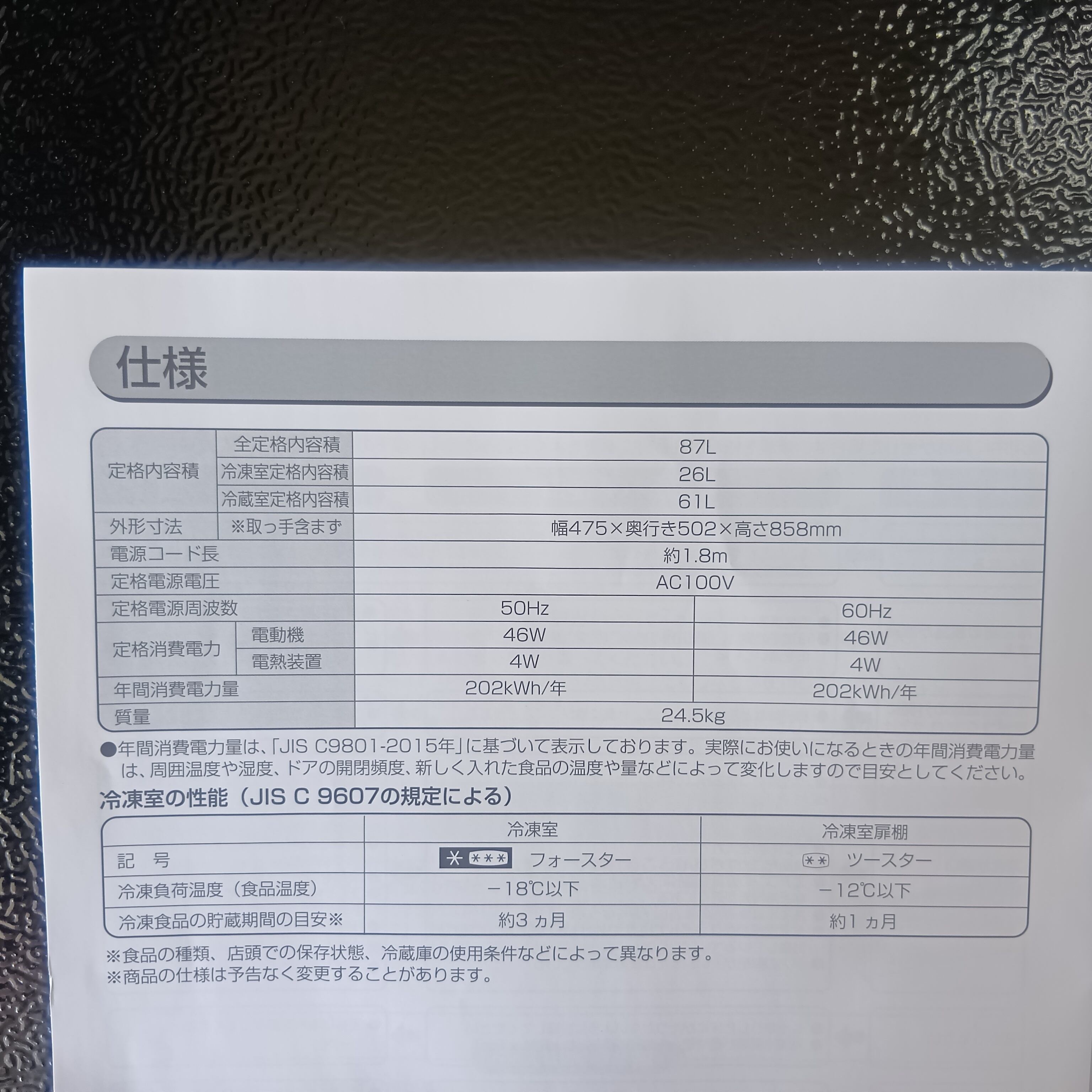 アイリスオーヤマ 87L 2ドア冷蔵庫です。