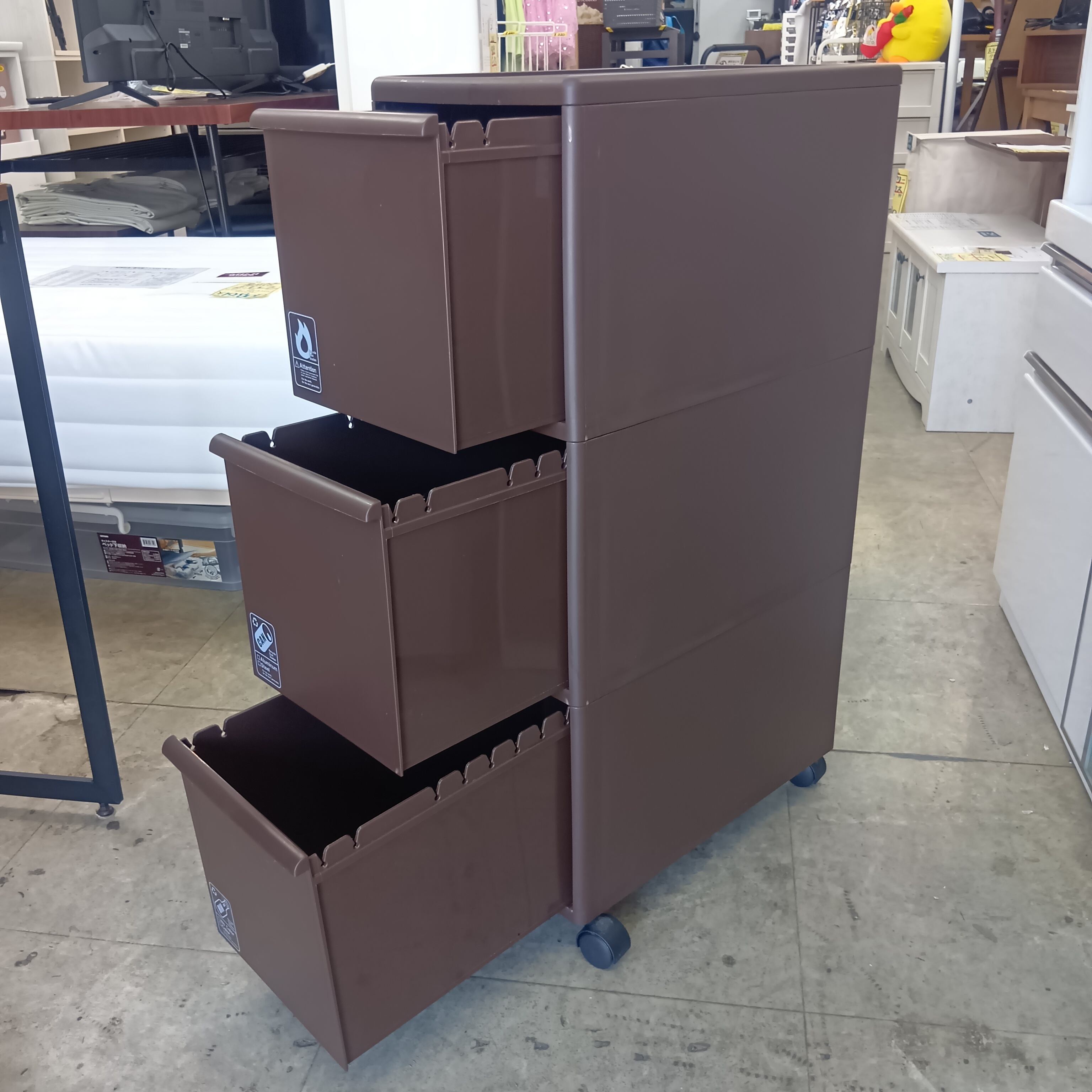 【リユース品】分別ごみ箱 3段 キャスター付き