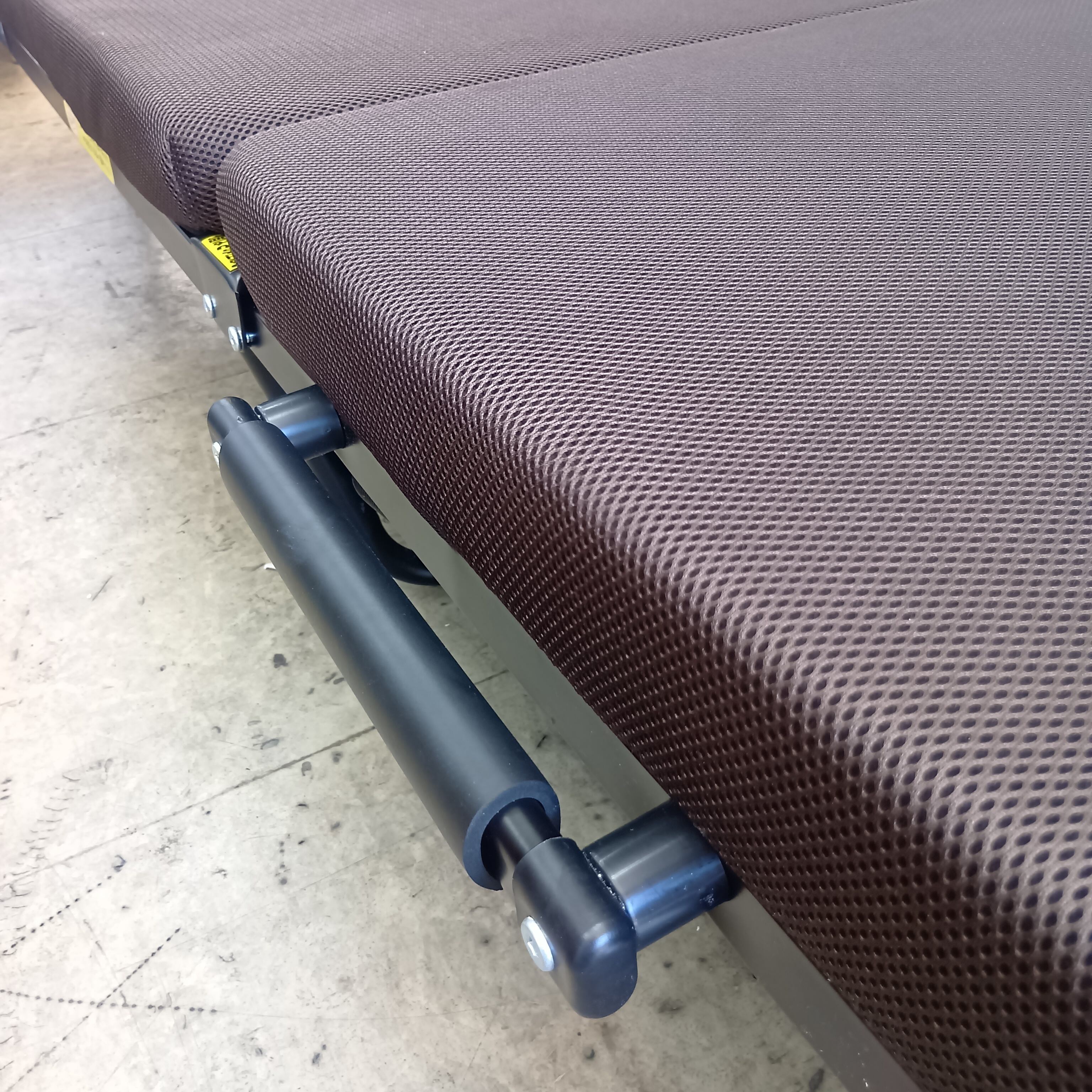 黒いメタルのフレームにダークブラウンのマットレスが