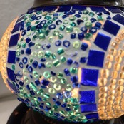 ブルー・グリーン・ホワイトのビーズとモザイクガラスが