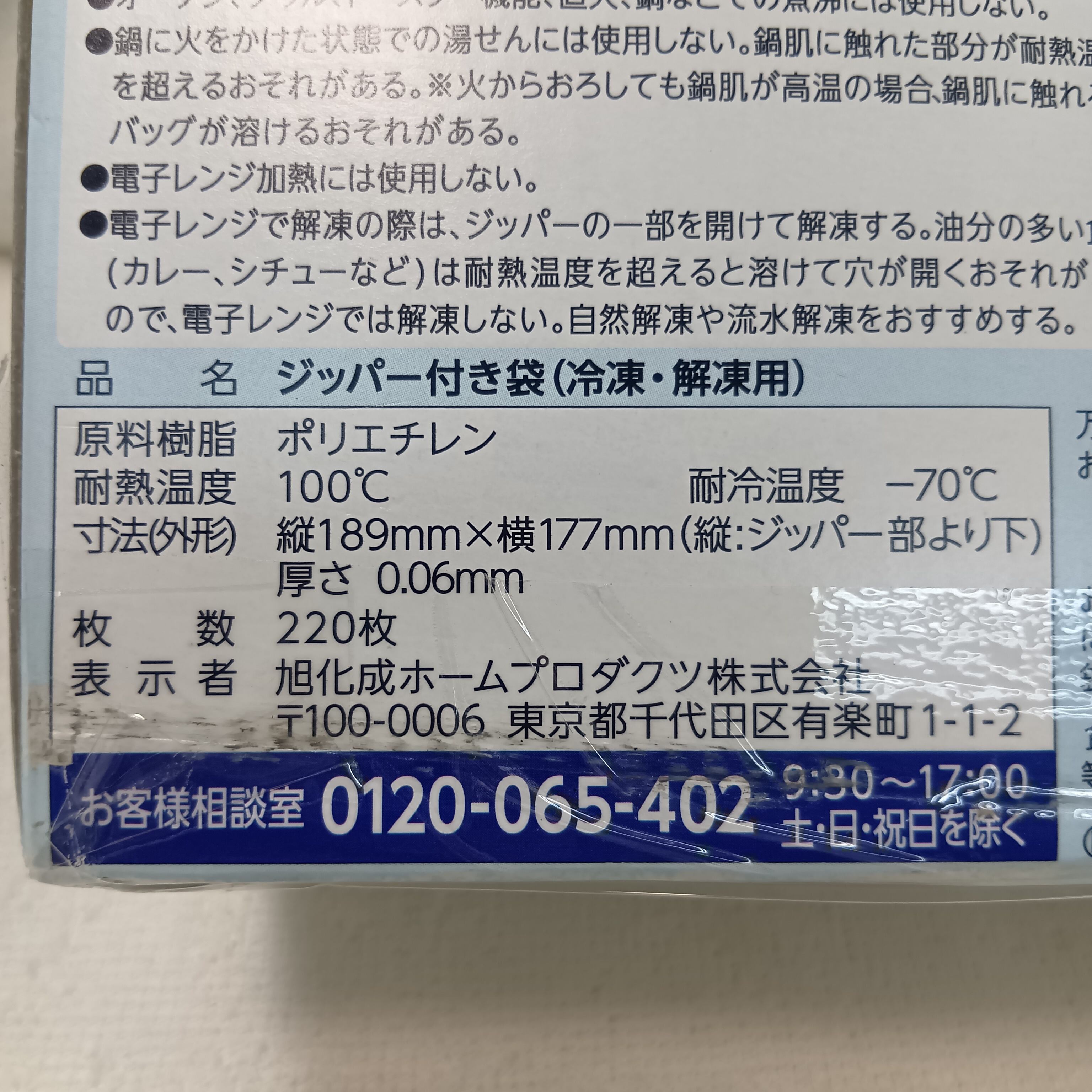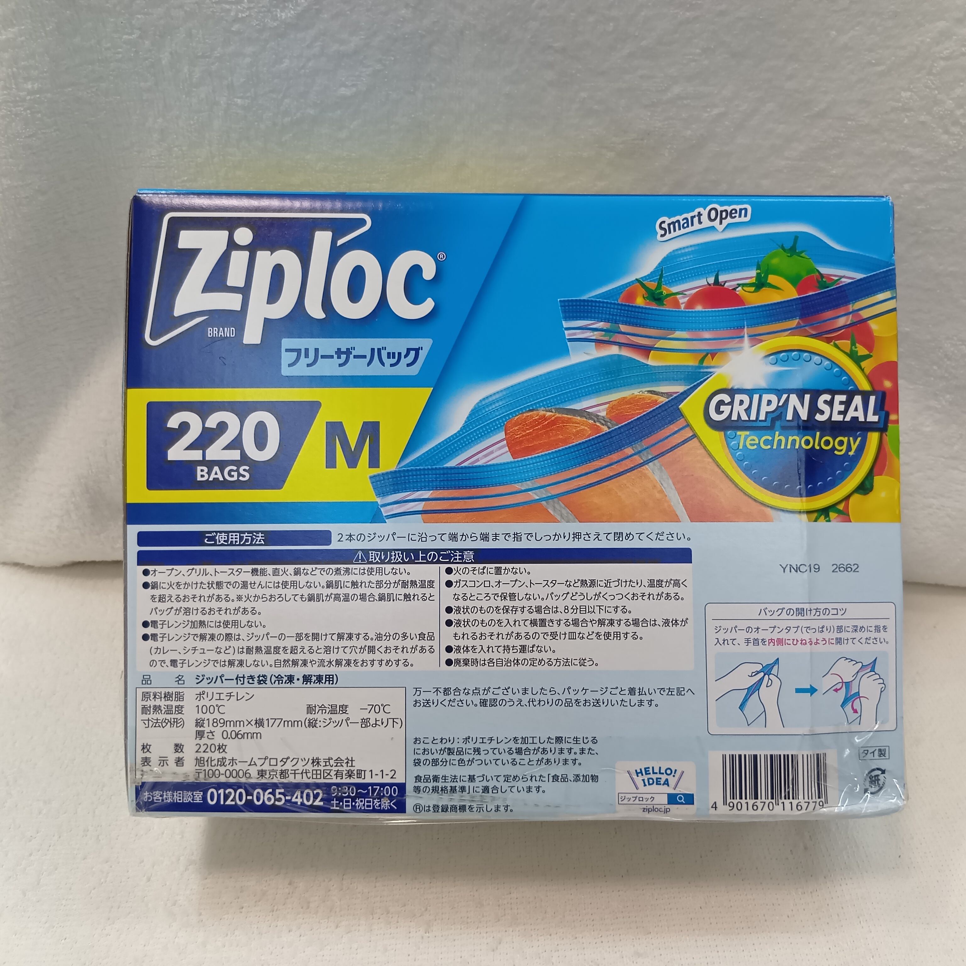 Ziploc Freezer Bag Mサイズ 1箱に220枚入り。