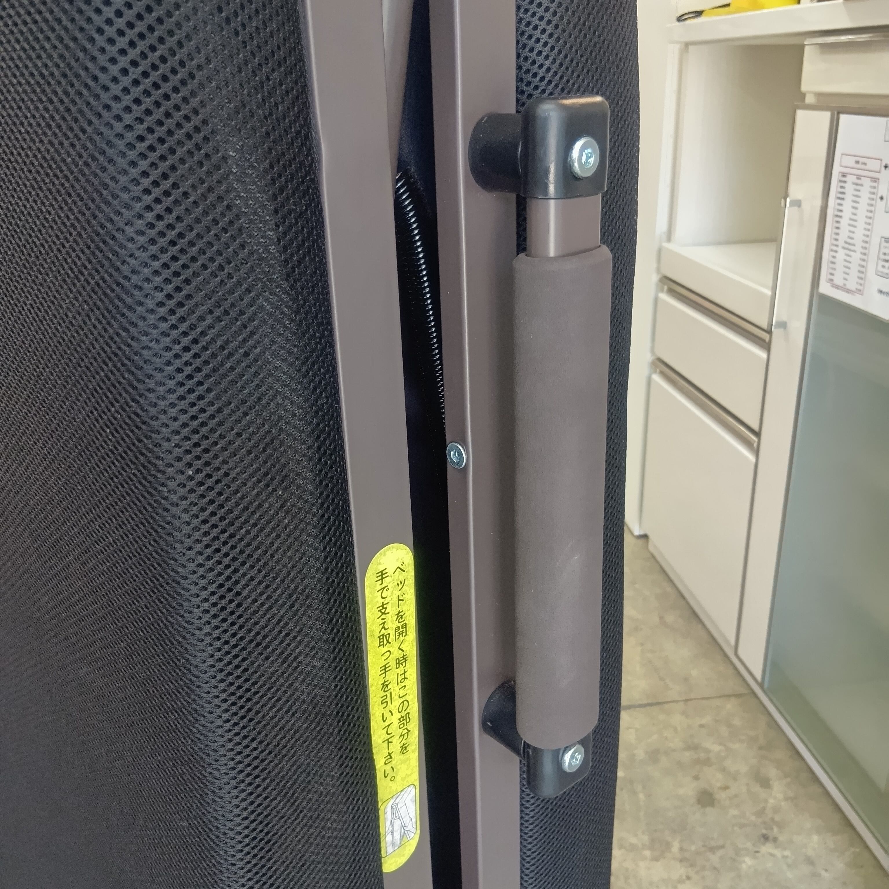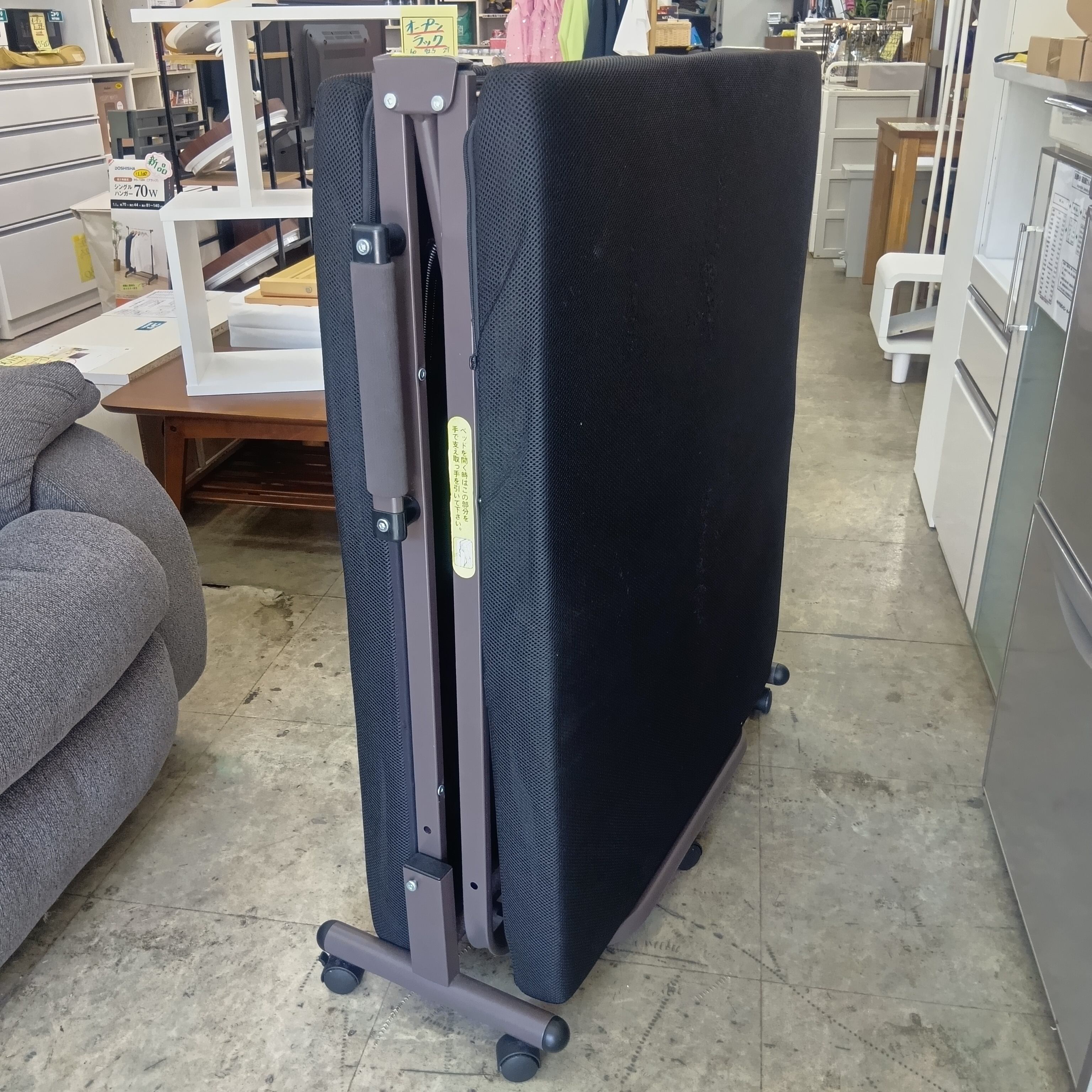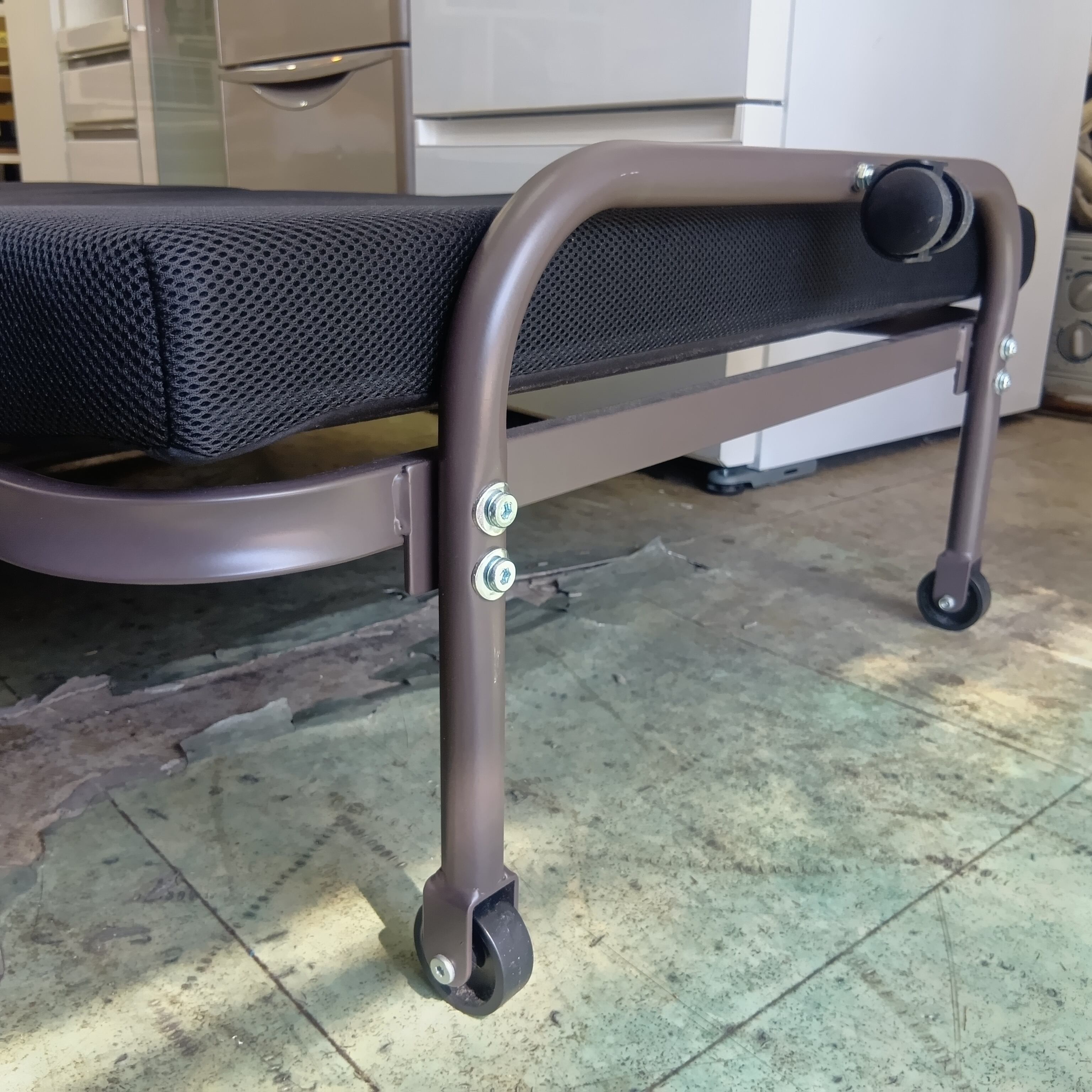 マットレスは薄めなので上に敷布団や三つ折りマットレス