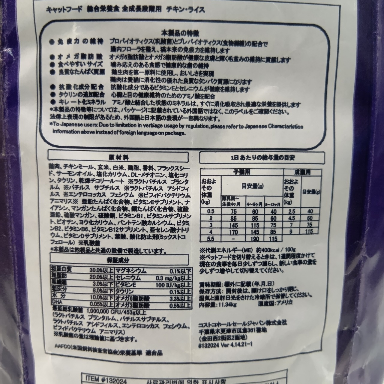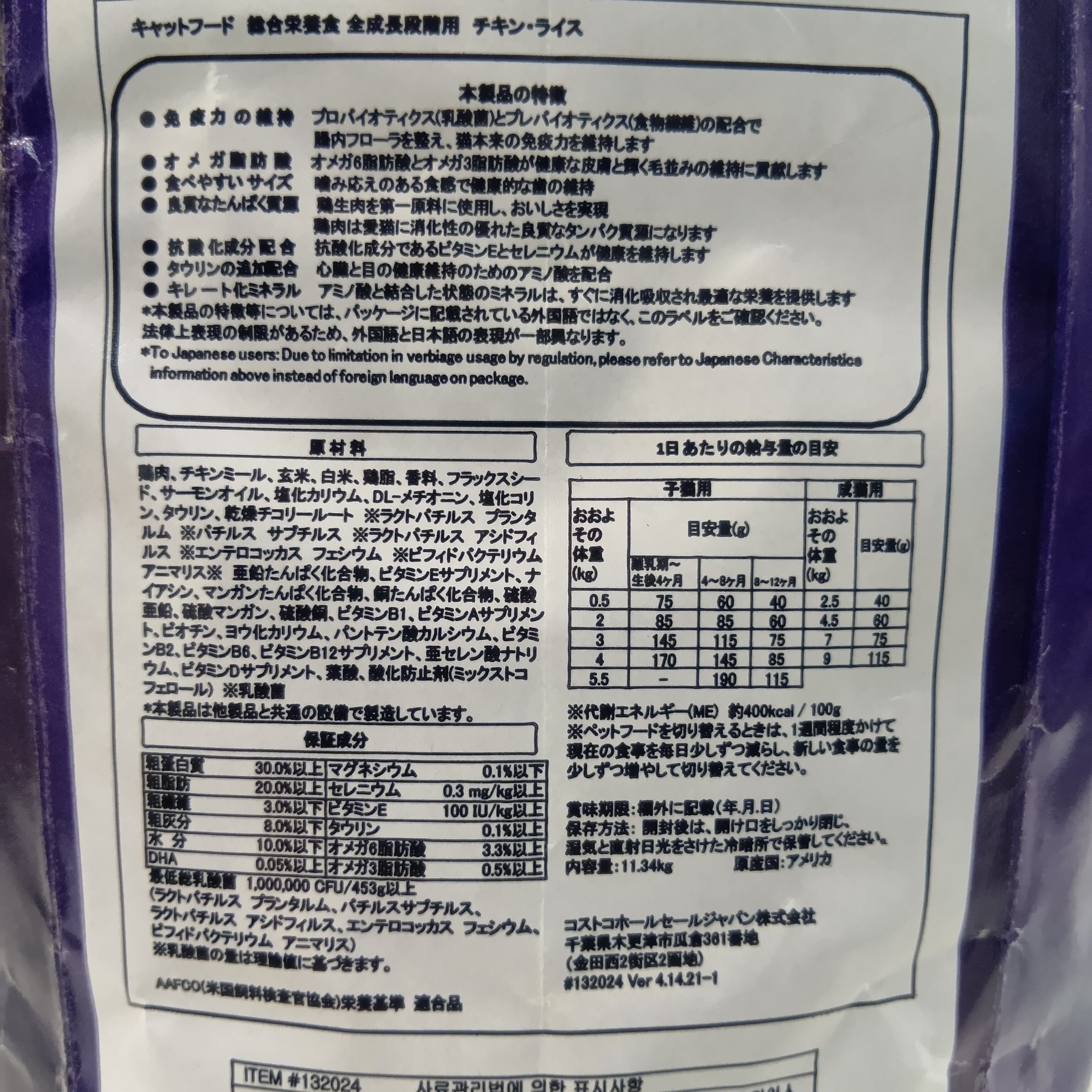 成猫・子猫用の総合栄養食です。大容量の11.34㎏。