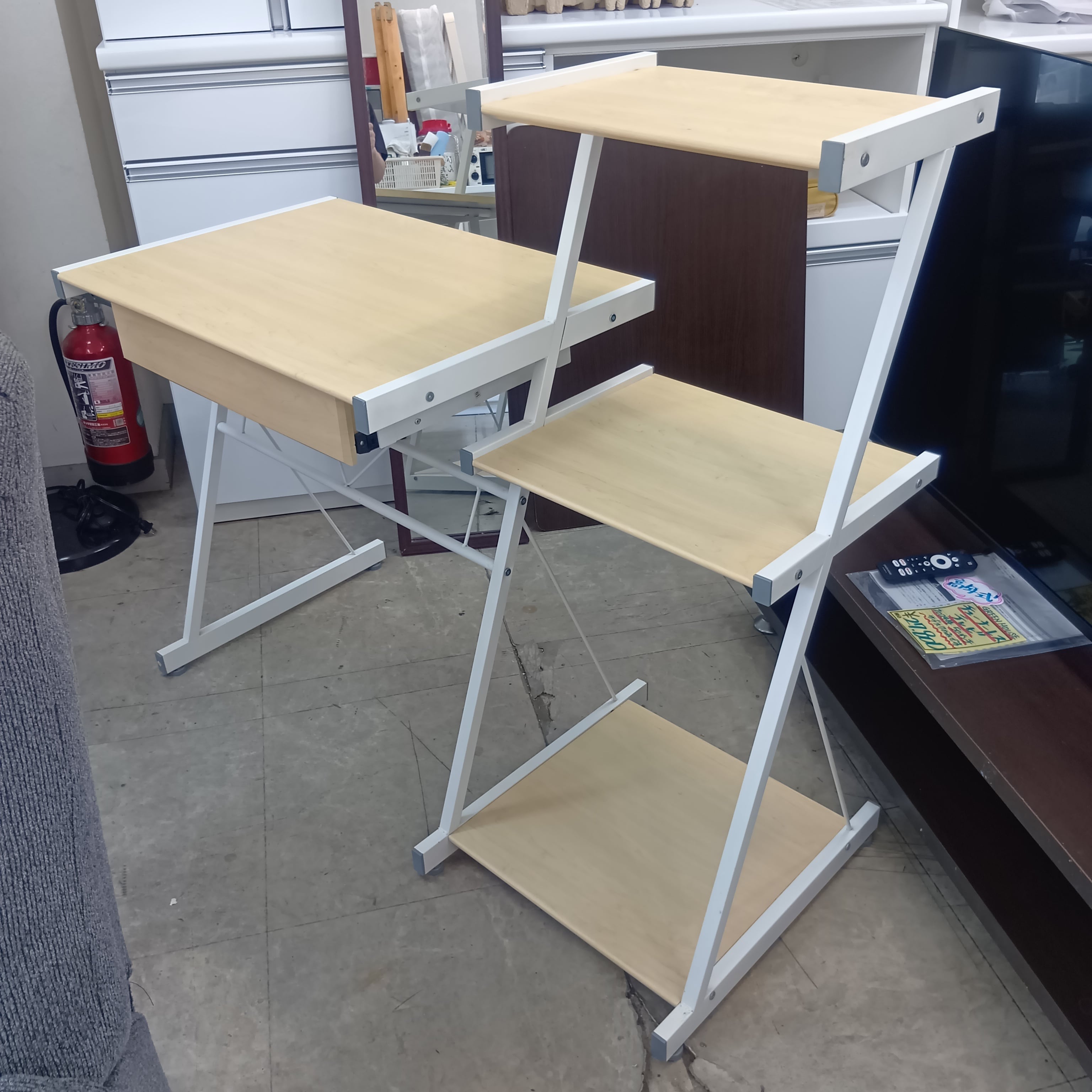 【リユース品】棚付きデスク 引き出しも付いてます。
