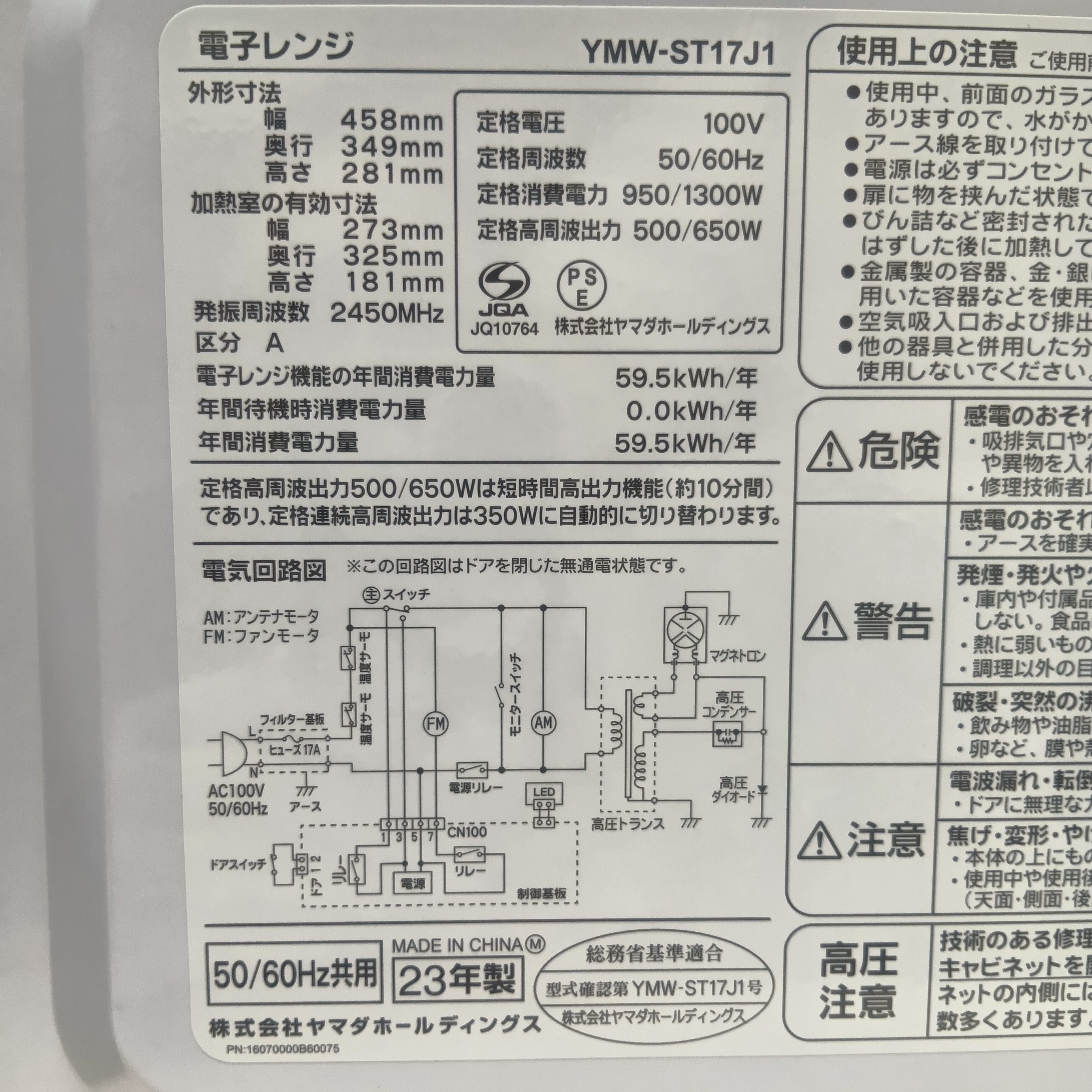 【リユース品】ヤマダ 2023年 電子レンジ フラットタイプ