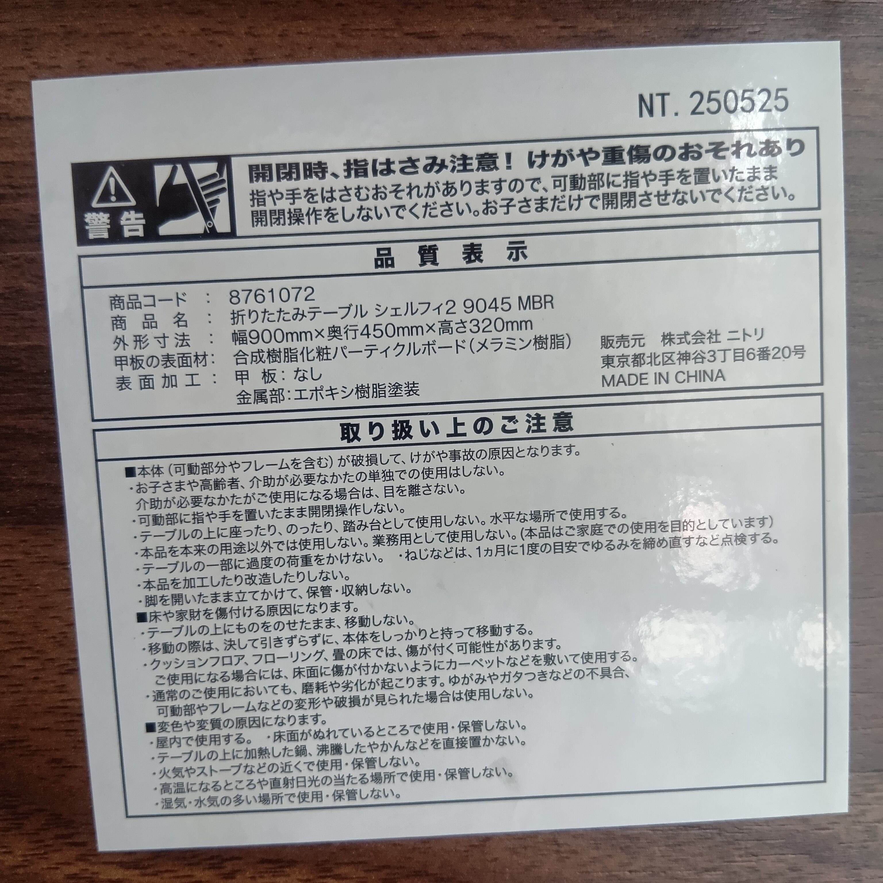 ニトリ 折りたたみテーブル シェルフィ2です。