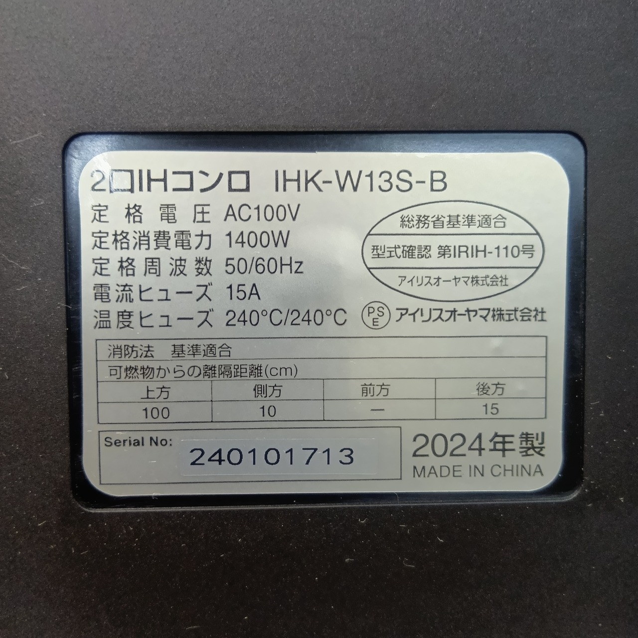 【リユース品】アイリスオーヤマ 高年式2024年 2口 IHコンロ 専用スタンド付き