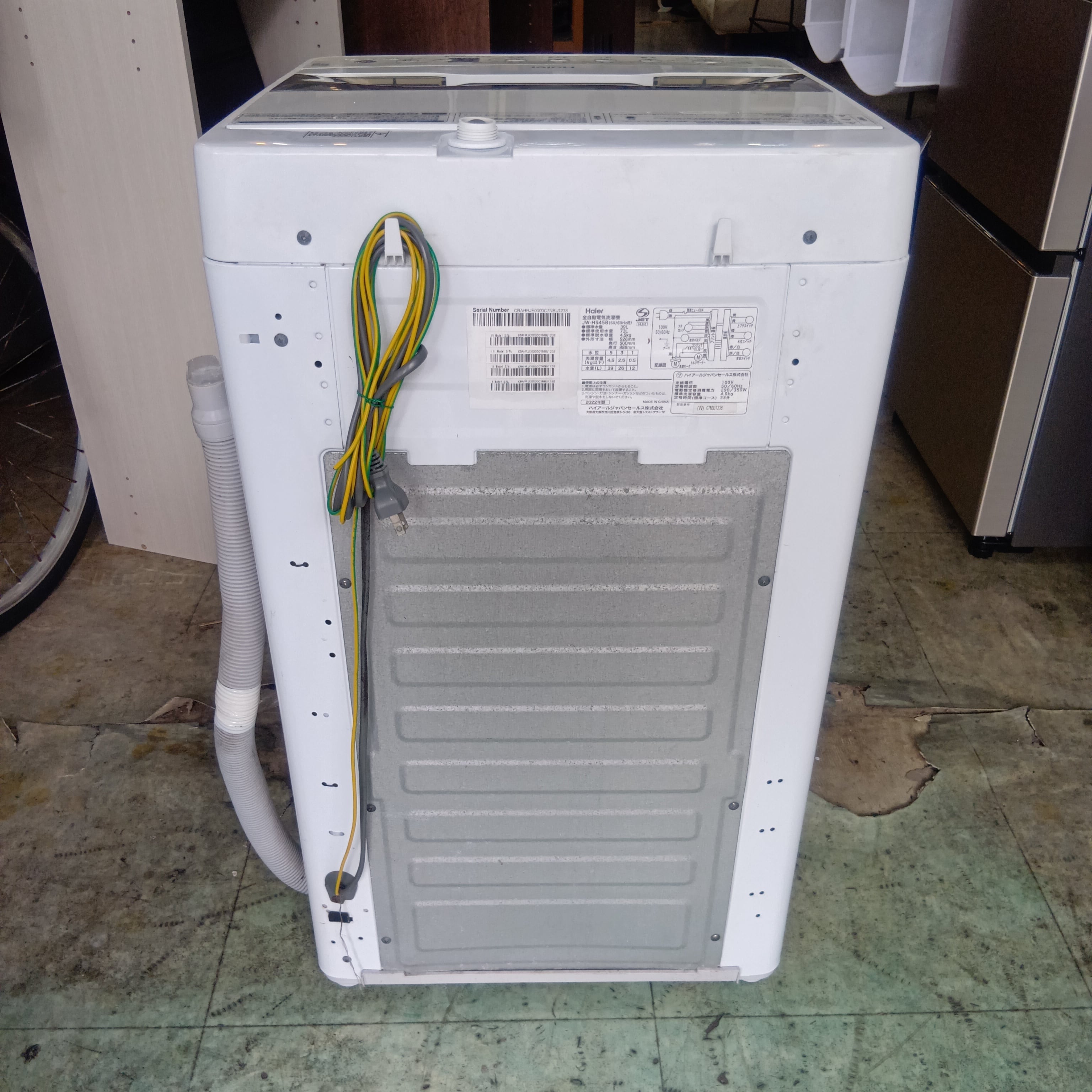 Haier 2022年製品 4.5K洗濯機です。
