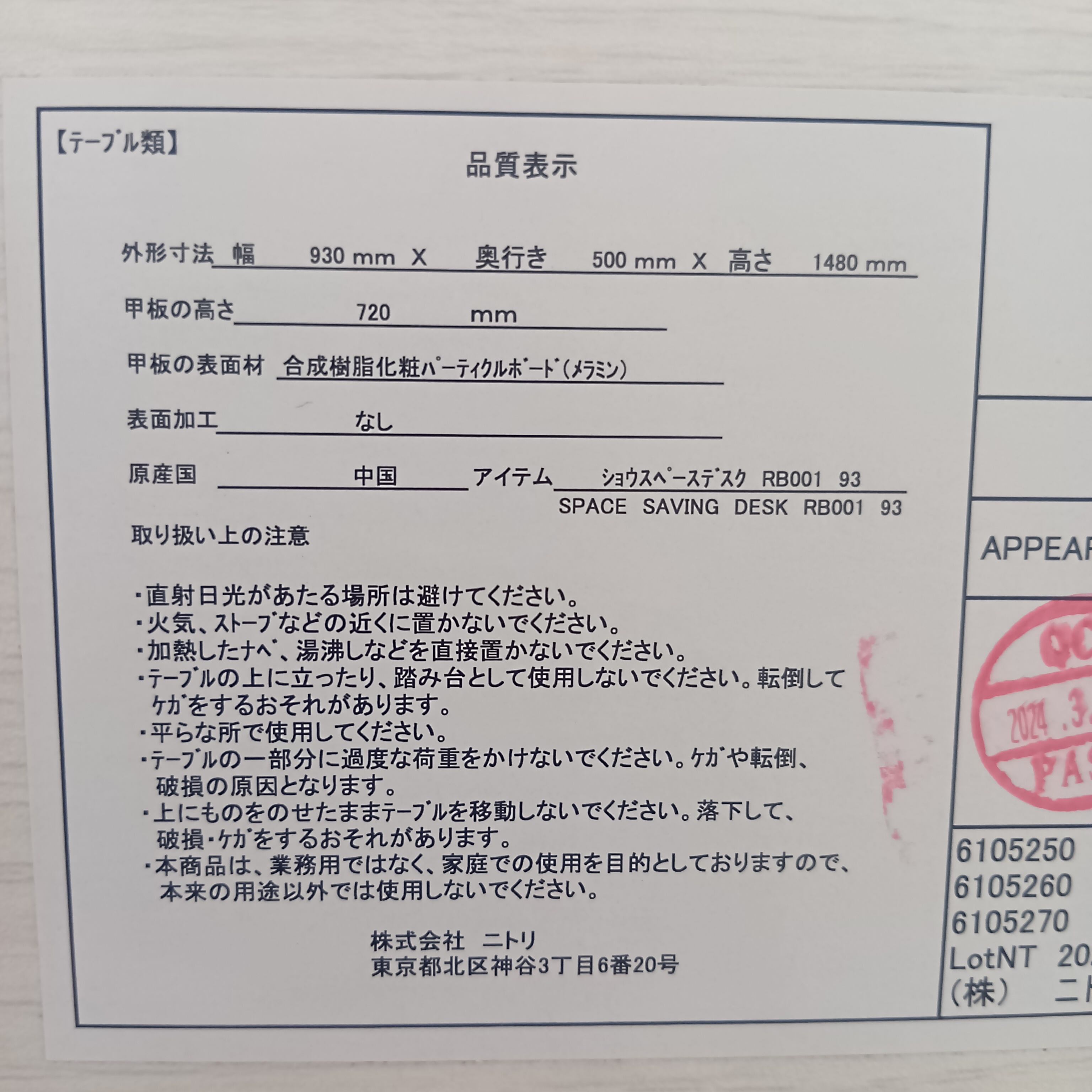 ニトリ 省スペースデスクです。