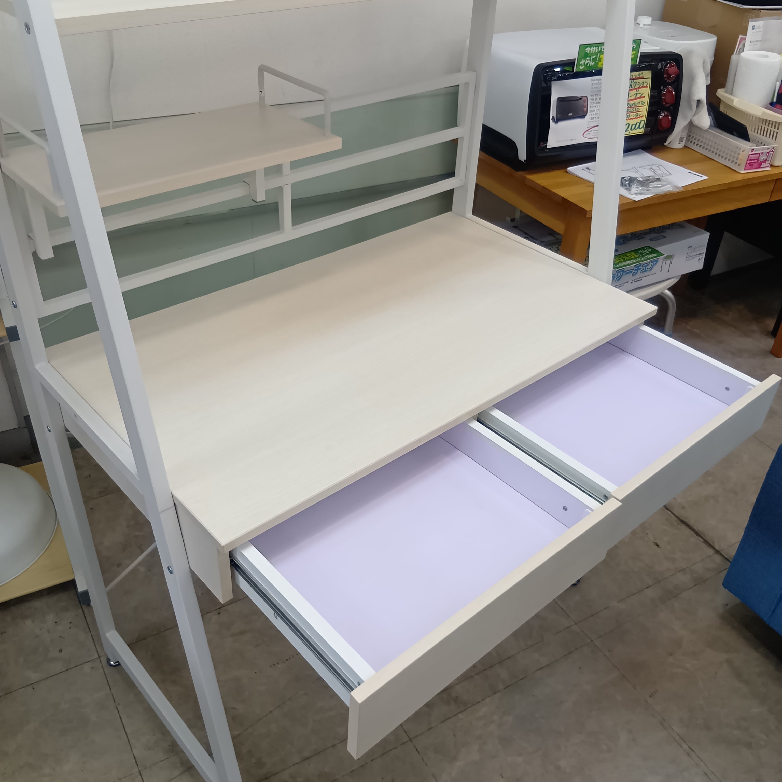 上棚、天板奥を収納スペースとして使えるので、