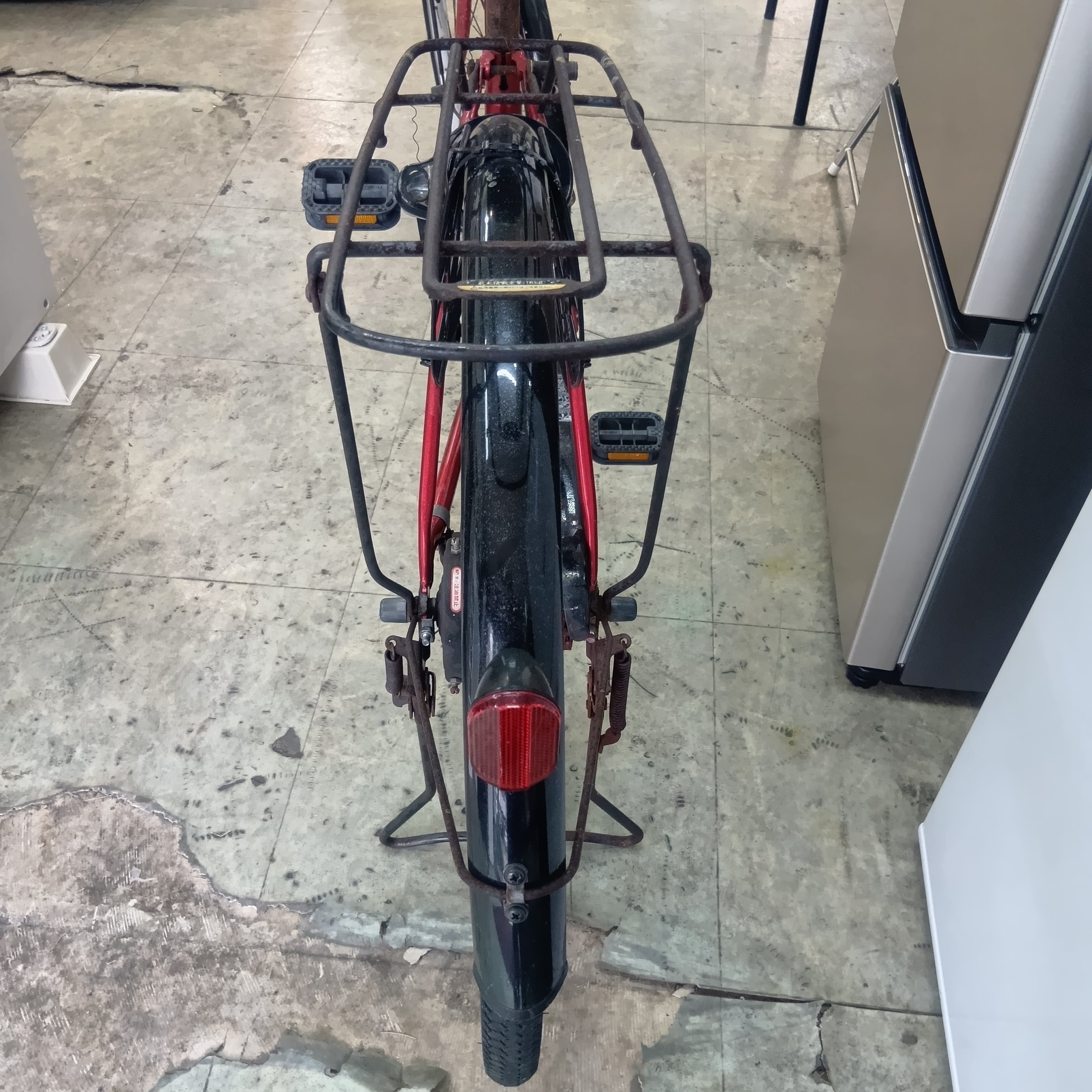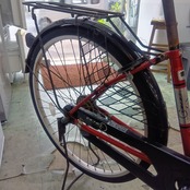赤いボディの自転車(ママチャリ)です。26インチ。