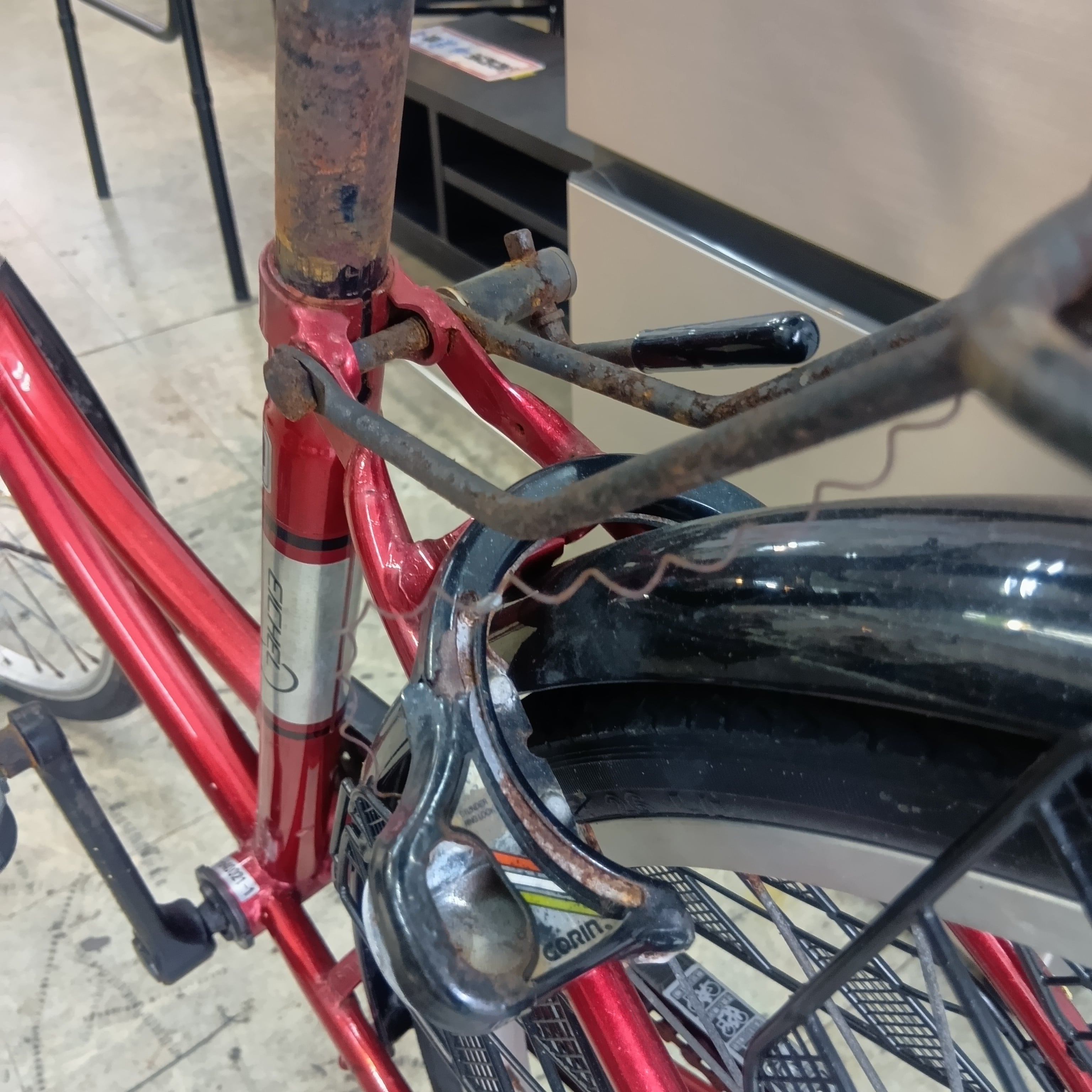 サビはあるし、ベルは壊れているし、カゴも変形してるし、